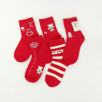Otoño Invierno Calcetines para niños para niñas y niños Single Cotton Crew Red Mid-Tube con Body Logo para uso diario para Navidad